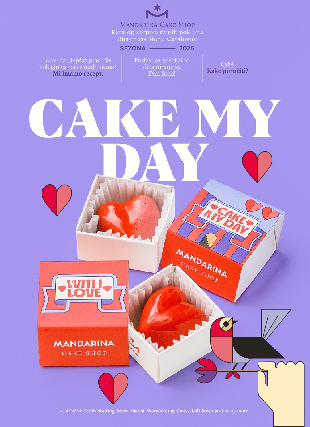 I postoje pokloni koji govore.Kolekcija korporativnih poklona za 8. mart iz Mandarine osmišljena je kao omaž ženama — njihovoj snazi, eleganciji i nežnosti. Svaka ručno iscrtana pralina, svaki kolač sa cvetnom dekoracijom, svaka torta inspirisana raskošnim laticama, kreirani su sa pažnjom koja se vidi u detalju i oseća u ukusu.
