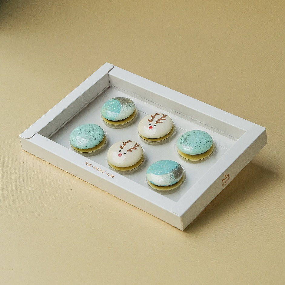 Mlečna i bela čokolada punjena mlečnim ganažom, marakujom, tonkom, džemom od kajsije i komadićima lešnika.;
